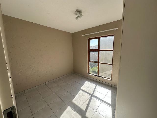 Spacious 3 bedroom 2 bathroom upstairs unit with balcony. Safe and secure complex with ample visitors parking. Allocated 1 covered and 1 open bay. Pool in complex. Close to Sebenza, Greenstone and Edenvale CBD. Walking distance to shops. Available immediately.