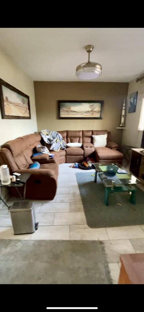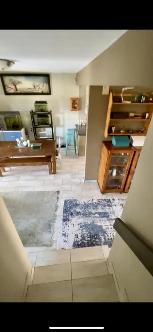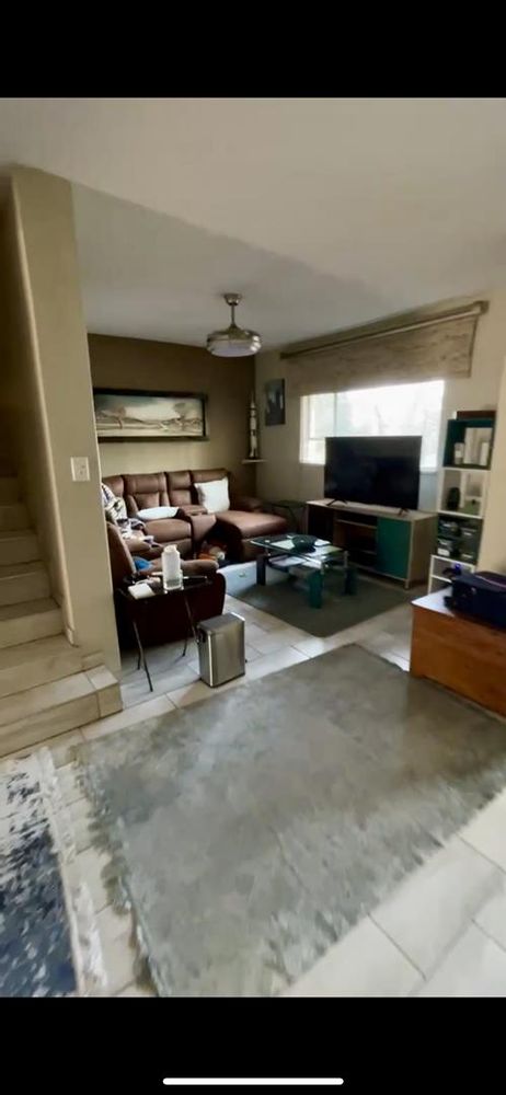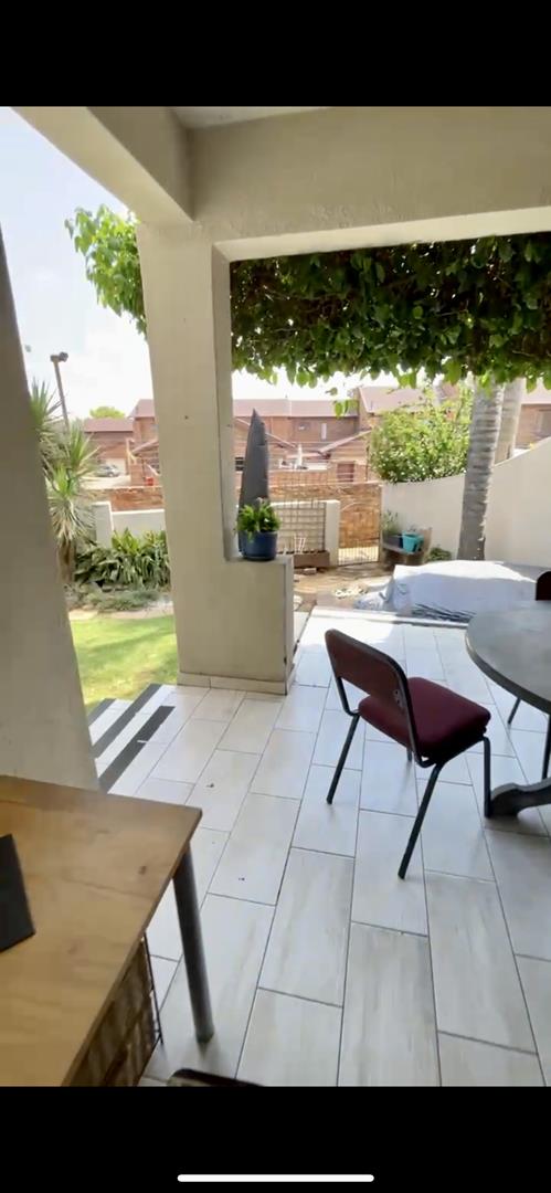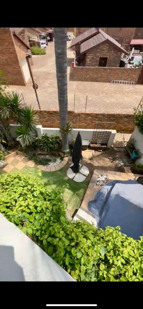 Spacious 3 bedroom, 2 bedroom (M.E.S). Open plan L shaped living area leading onto a kitchen with laminate kitchen counter and a breakfast nook. Sip cocktails in the jacuzzi watching the sun set. Garden area and one garage, one covered parking and additional parking. This is a small complex and the unit is situated privately.