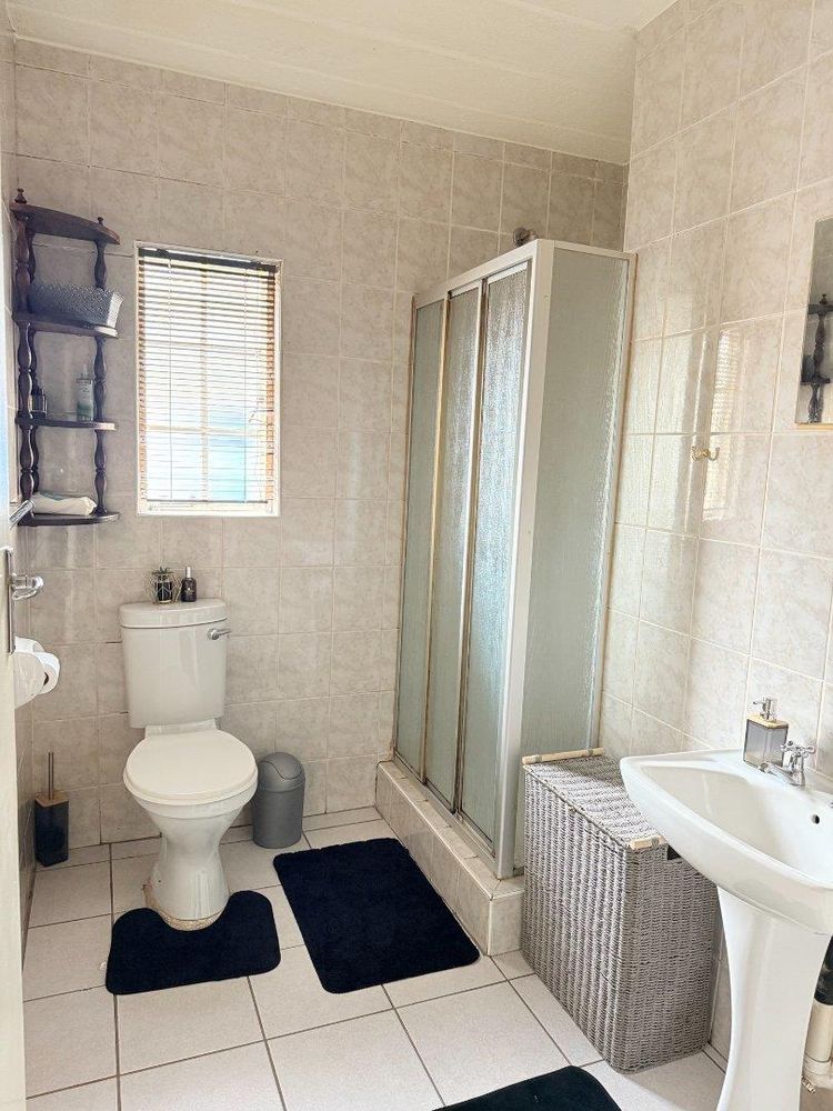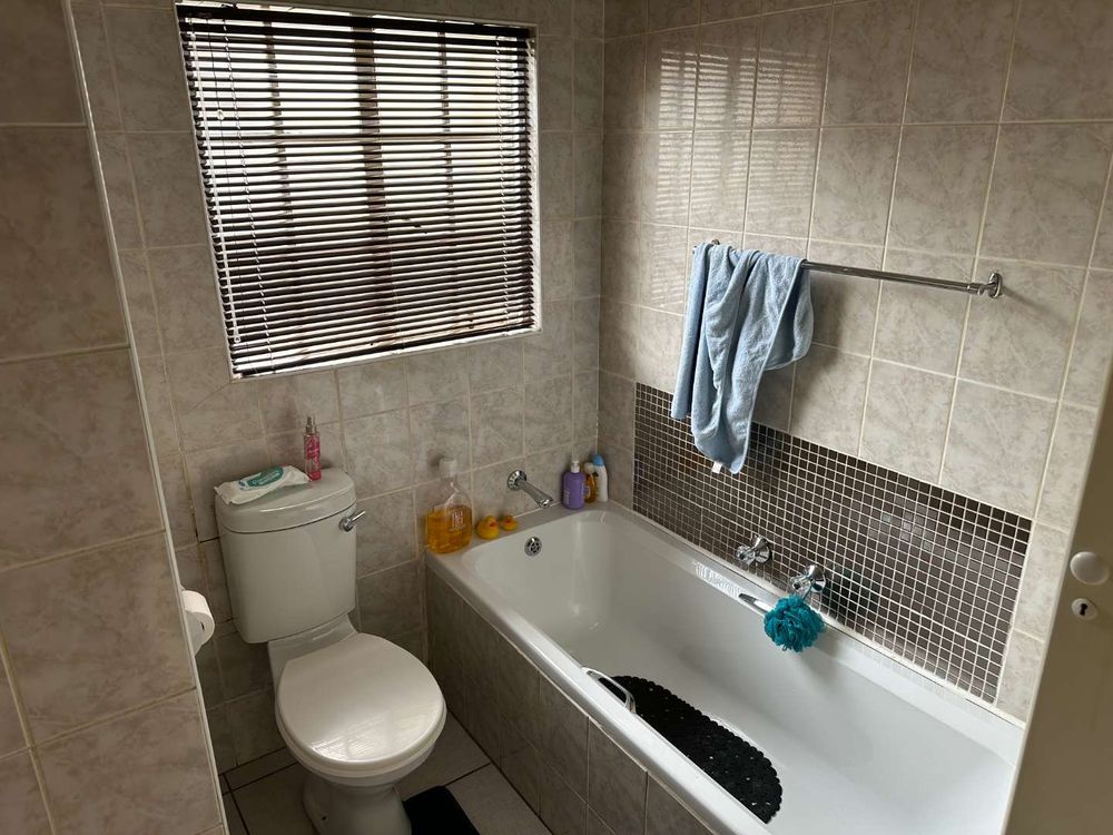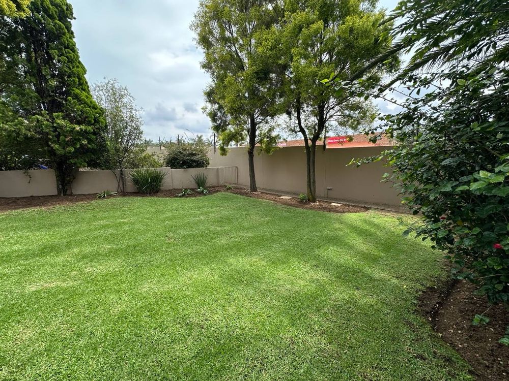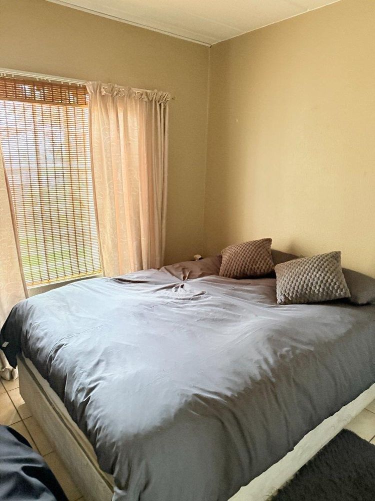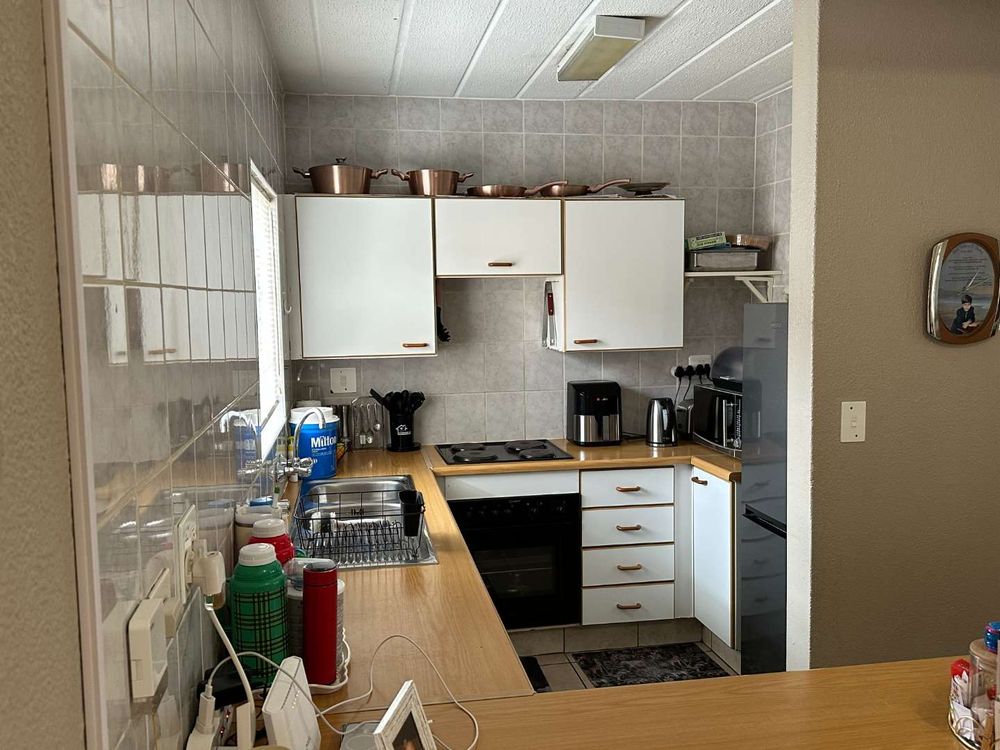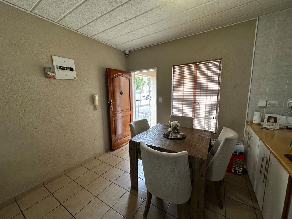 The kitchen has a granite counter, the floor is laminate, which leads out to the large garden with patio and braai area.