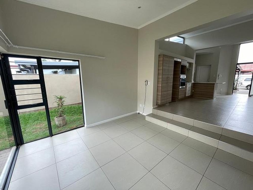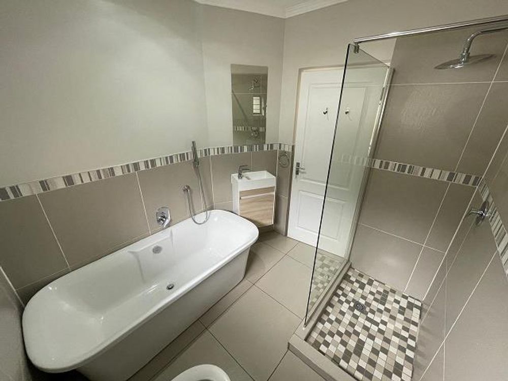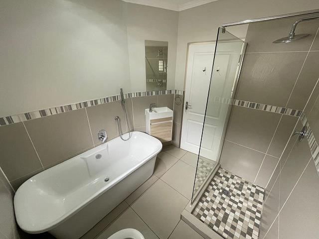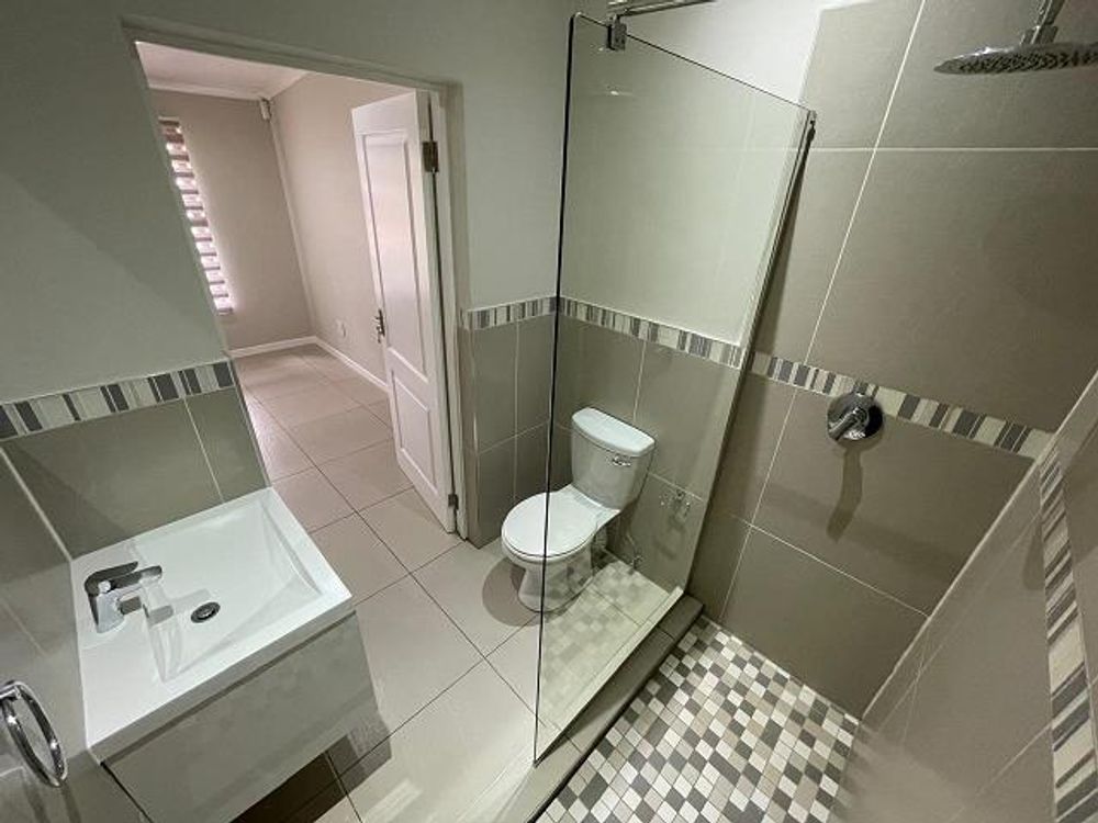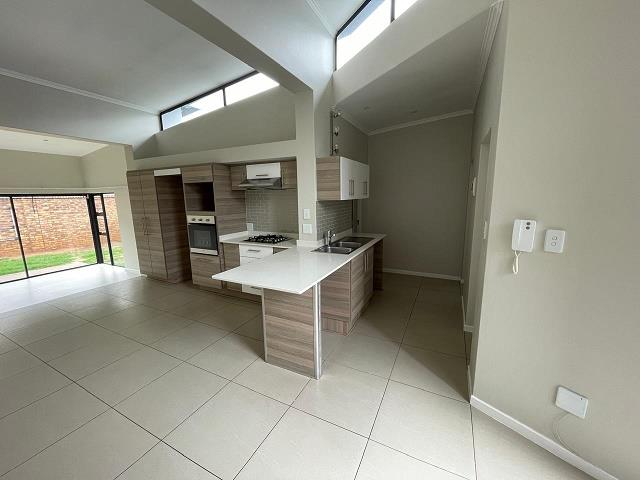 Modern townhouse apartment in the heart of the Edenvale Avenues offering efficient and convenient living. Two tastefully designed bedrooms with lovely wardrobes. Two bathrooms equipped with upmarket bathroom, shower and Hansgrohe plumbing fixtures, LPG gas hot water geyser. Gas stove. Pre-paid electricity and fibre installed in the unit. Enclosed garden with built in barbeque braai. Alarm system. Water excluded. Only small vaccinated dogs.