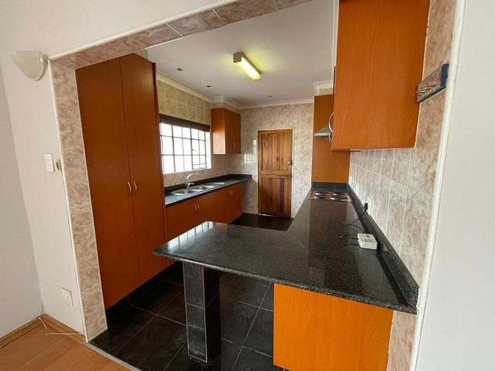 Neat 3 bedroom 2 bathroom house with double garage. Large open plan lounge /dining room with wooden floors. Granite kitchen counter. Braai area. Easy freeway access and close to schools and shops.